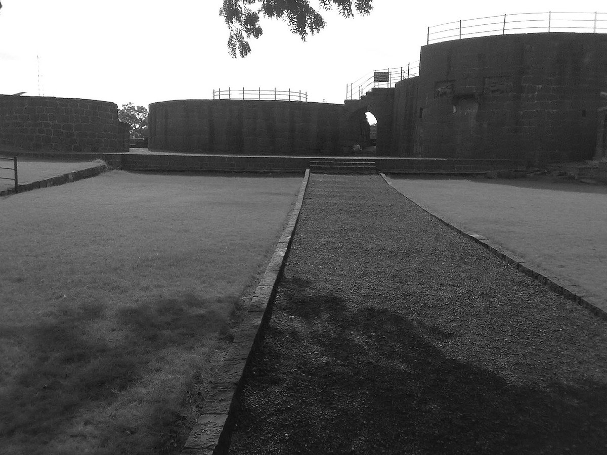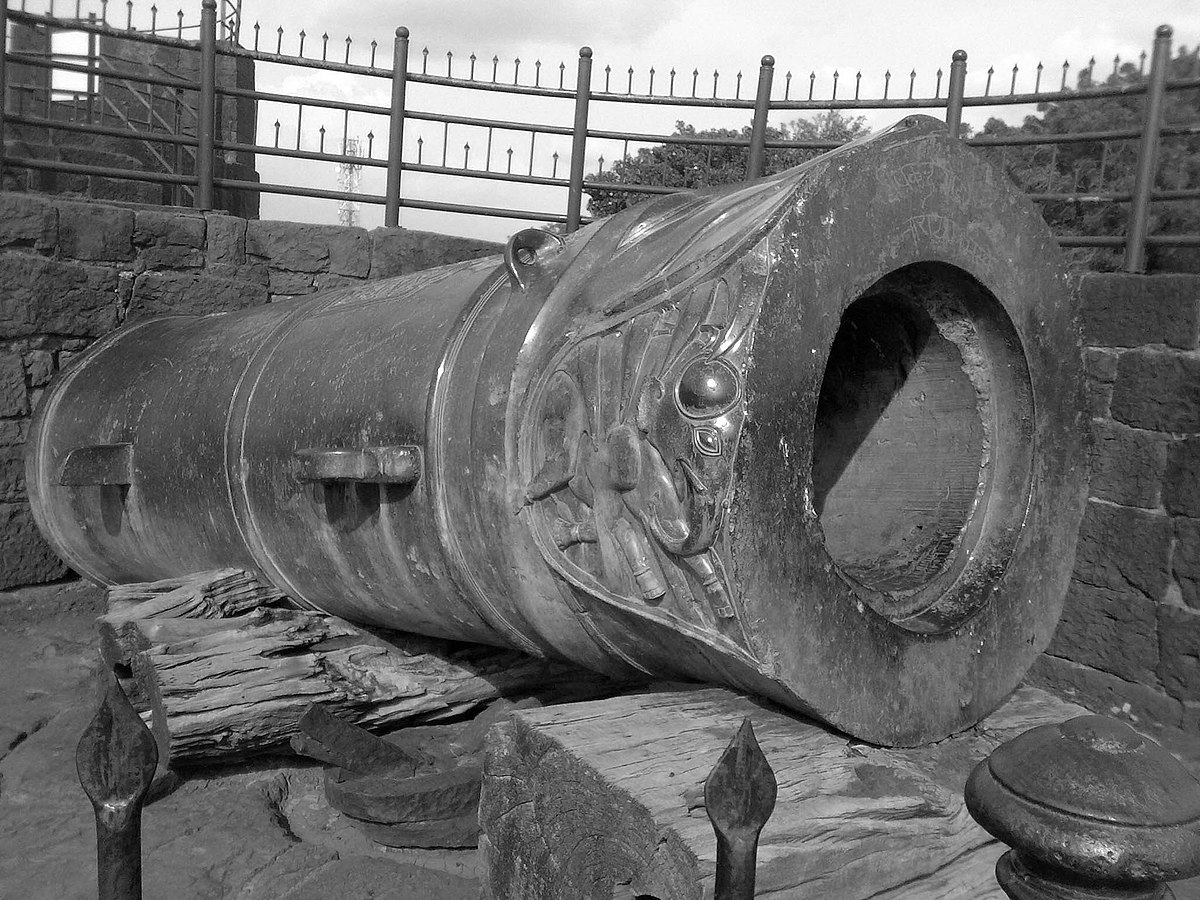 AAbout 35 meters away from the north of Phatka Gat stands the Serzi Buruj or Lion Tower named after two heraldic lior carved in stone to the right of the entrance which leads to the tow platform. The bastion though not very high is of great diameter ar is very strong. In the center are two raised circular platforms ~ cannon, on one of which lies supported on beams of wood the gre gun of Bijapur, (next only to Landa Kasab) the Malik-l-Maids (monarch of the plain). It is estimated to weigh about 55 tons ar was cast at Ahmadnagar in 1549 by a Turkish officer in the service Burhan Nizam Shah I. This colossal piece of ordnance differs fro the other Bijapur guns in that it is cast and not welded.Its composition is unknown, but when stuck, it sounds like bell and is probably of the same alloy that is used in making gong Outside it is of a dark green colour, the surface polished like glas while it is adorned with inscriptions in ..Persian and Arabic beautiful Malik Jahan Begum's Mosque: About 90 meters to the west of the citadel stands this mosque built in 1586 by Ibrahim Adil Shah II in honour of his wife, Malika Jahan Begum. This building is a fine specimen of the more delicate phase in Bijapur architecture. Stucco ornament also enters into the general scheme of decoration. The mosque is also called Janjiri Masjid on account of the small stone chains that once adorned is cornice. There is a tank in front of mosque and the mosque reflects in the tank, when the waters are not disturbed.