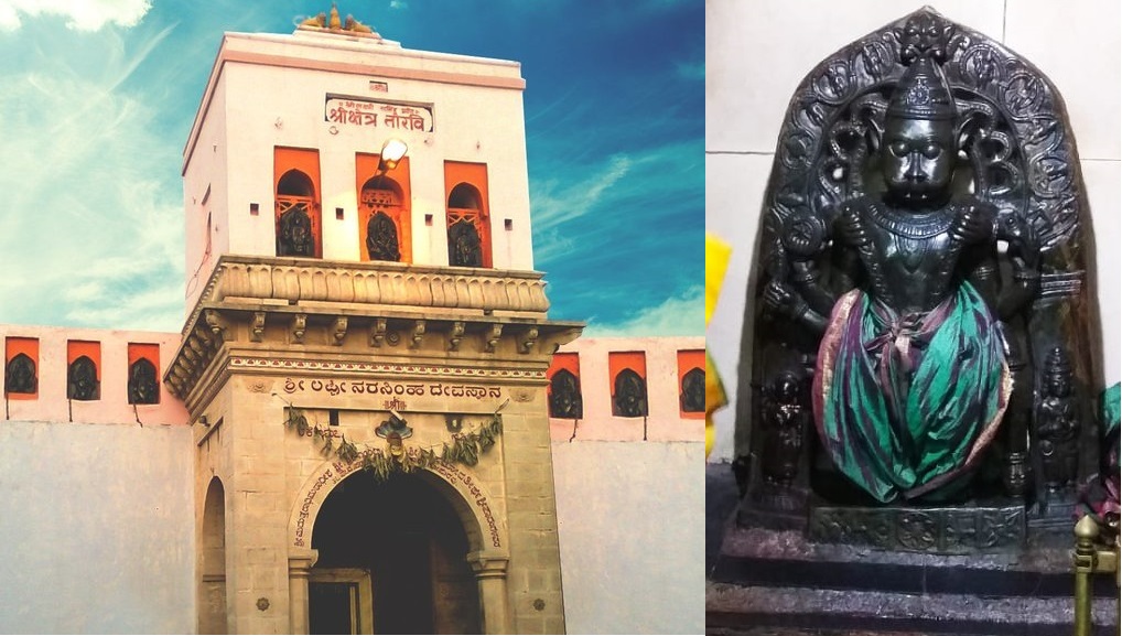 This temple, popularly known as Narasimha's temple is in the west centre of the citadel. The temple is dedicated to God Dattatraya (in the name of Narasimha Saraswati, believed as an incarnation of Dattatraya). The audience hall was a stone structure, but is has now been replaced by a gabled courtyard iron cover standing on wooden pillars. Ibrahim Adil Shah II. seems to have taken great interest in this temple and is reported to have also worshipped in it. There are placed a pair of padukas (sandals) as object of worship.