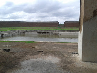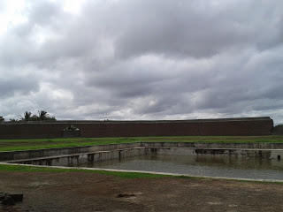 About the center of 'Navraspur' near Thoravi ( a new city built by Ibrahim Adil Shah II, four miles to the west of Bijapur, which is now in ruins) within a high walled enclosure, are the remains of the Navras or Sangtt Mahal which is a duplicate on a smaller scale of the Gagan Mahal in the citadel of Bijapur. Most of the palace is a mass of ruin. A small stream encircles the palace on two sides, and surrounding all about a 100 meters off, a lofty wall secures privacy. With the hills round Navraspur in the background and the ruins of the other palaces on every side, the view of the Sangit Mahal is worth watching (A Navraspur Utsav or music festival is held here annually).